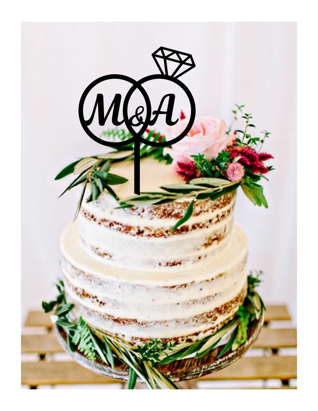 Sorprende a los invitados de tu boda con este topper cake Alianzas con iniciales personalizado.