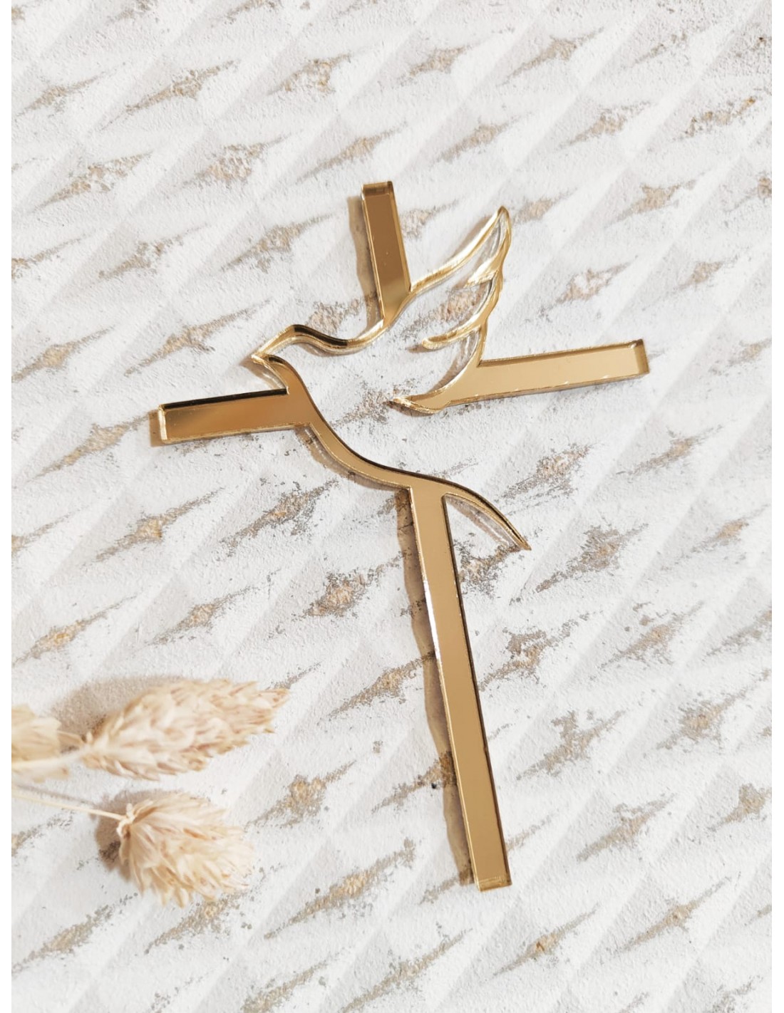 Os presentamos este complemento ideal para vuestras tartas, una Cruz paloma acrílica frontal, que hará que tu tarta tenga un mayor protagonismo.
