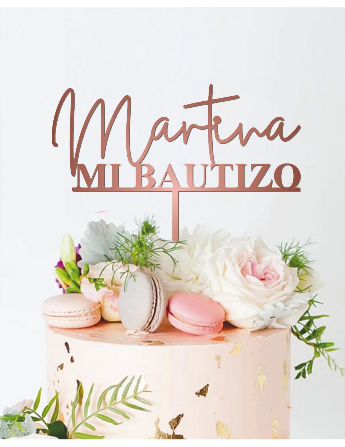 Con este topper personalizado para bautizo, tu tarta tendrá mayor protagonismo.