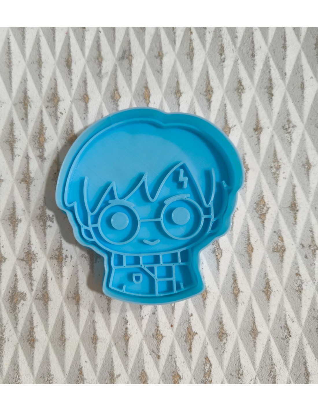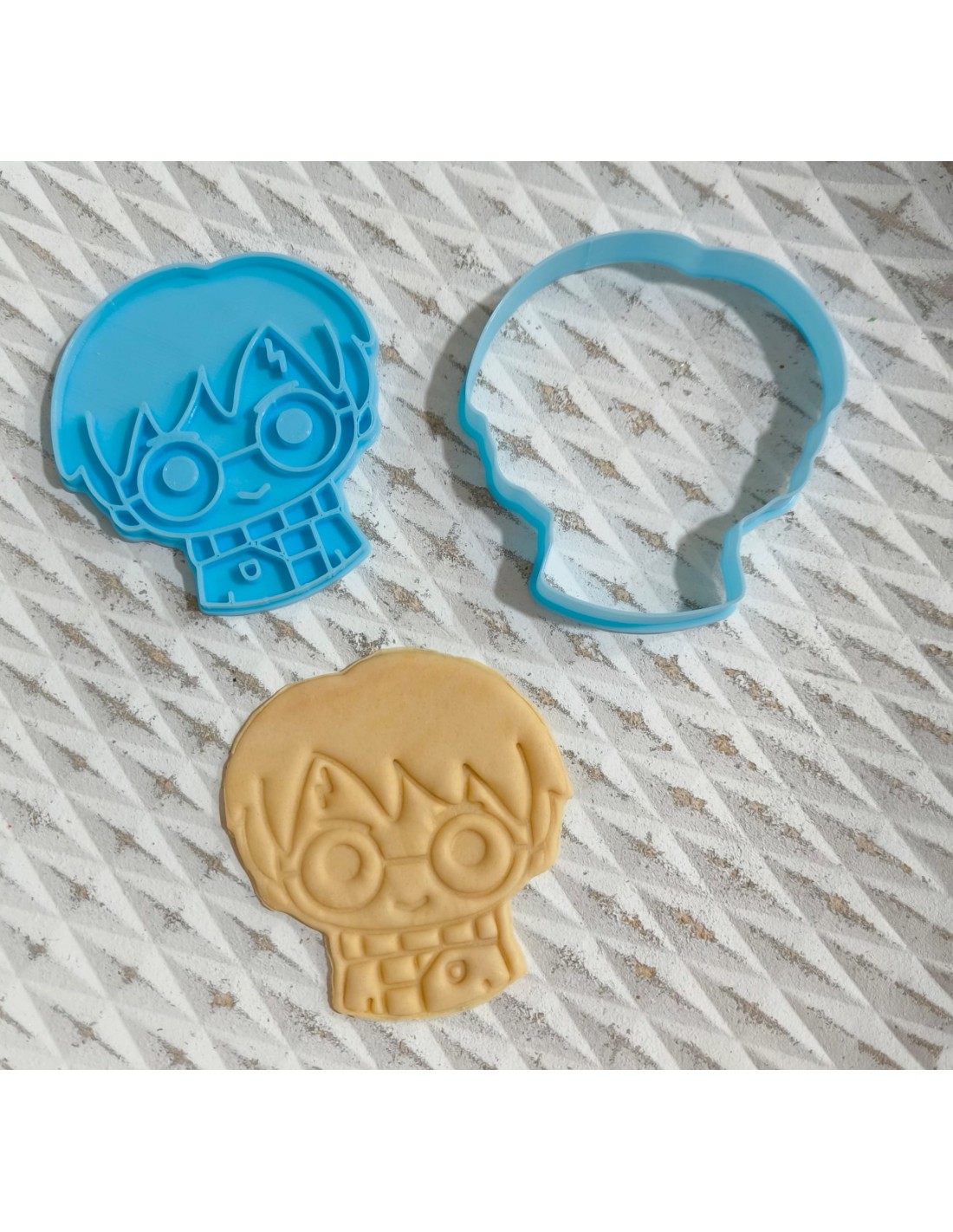 Este original cortador con forma de Harry Potter tiene un tamaño de 8,5 x 8 cm aprox.