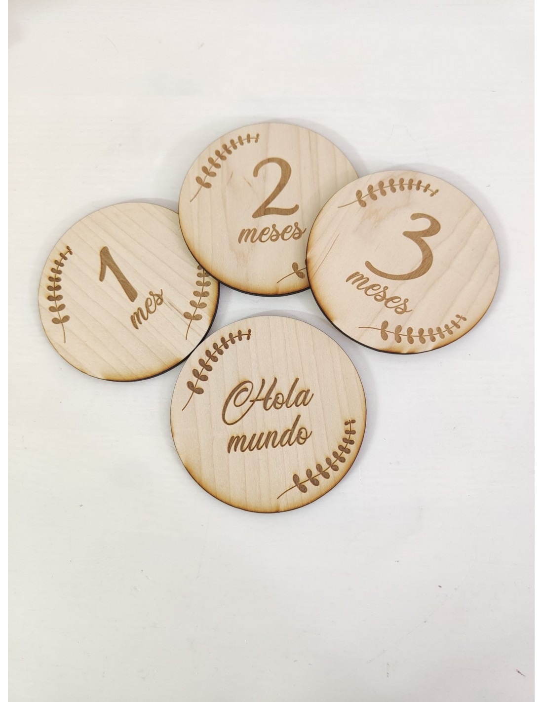 Set de 13 cumplemeses con un bonito diseño grabado en madera, ideales para fotografiar el crecimiento de tu bebé.