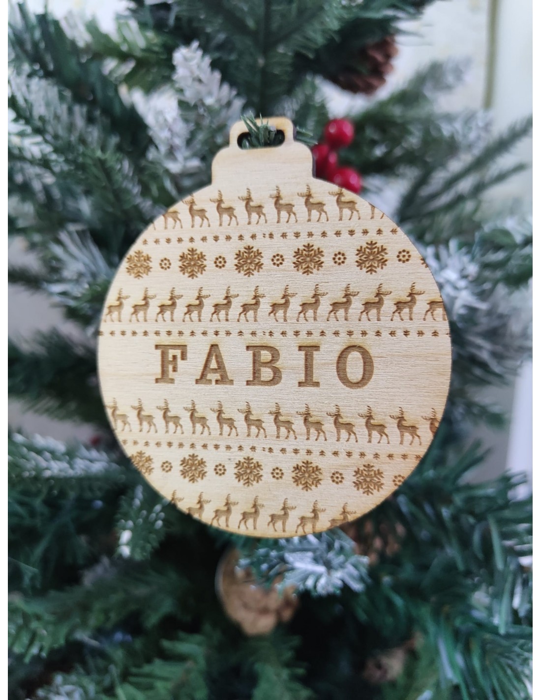 Este adorno está elaborado en madera. Decorar el árbol de manera original ahora es facilísimo con estos adornos de Navidad personalizados.