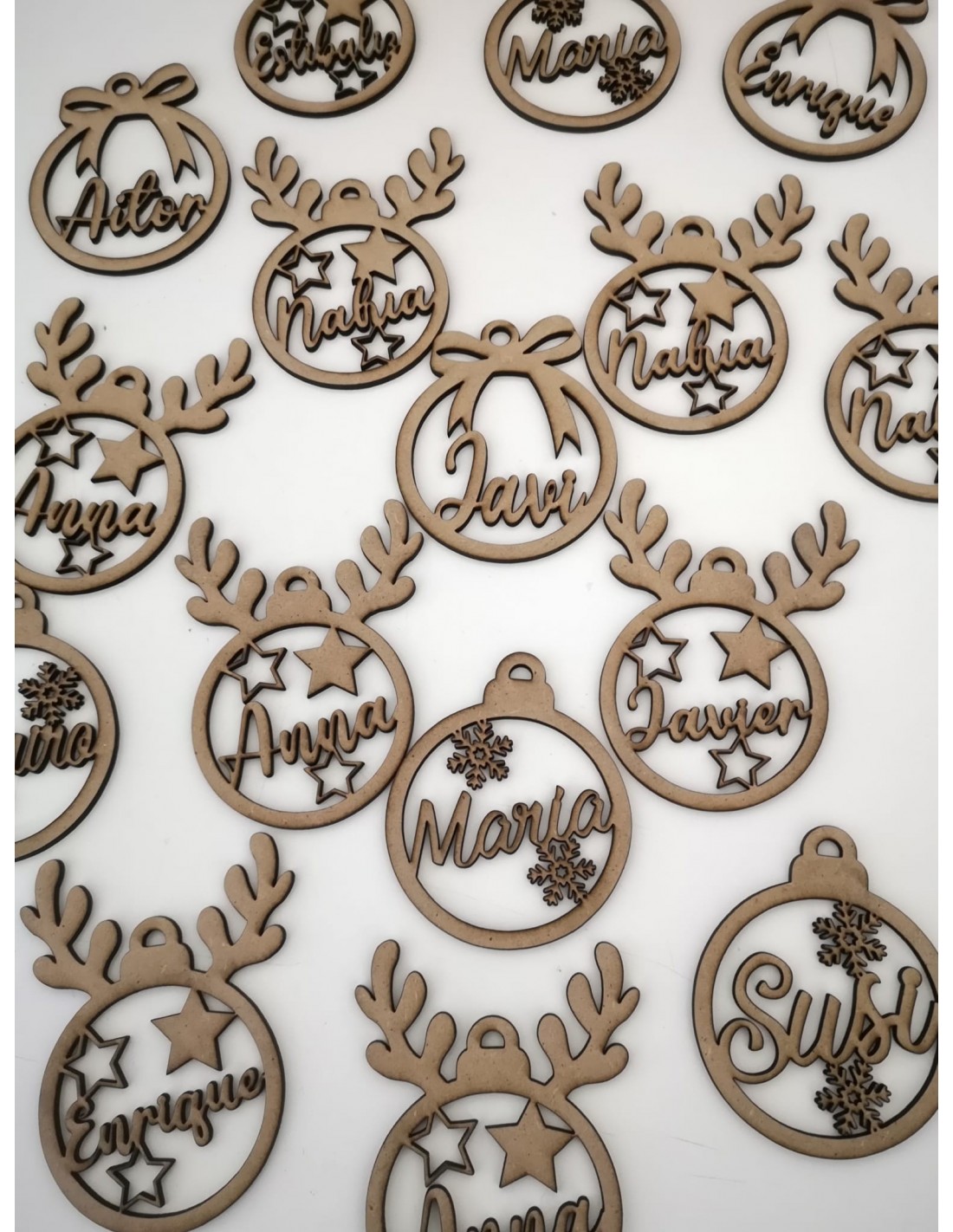 Este adorno está elaborado en madera DM o metacrilato de 3 mm. Decorar el árbol de manera original ahora es facilísimo con estos adornos de Navidad personalizados.