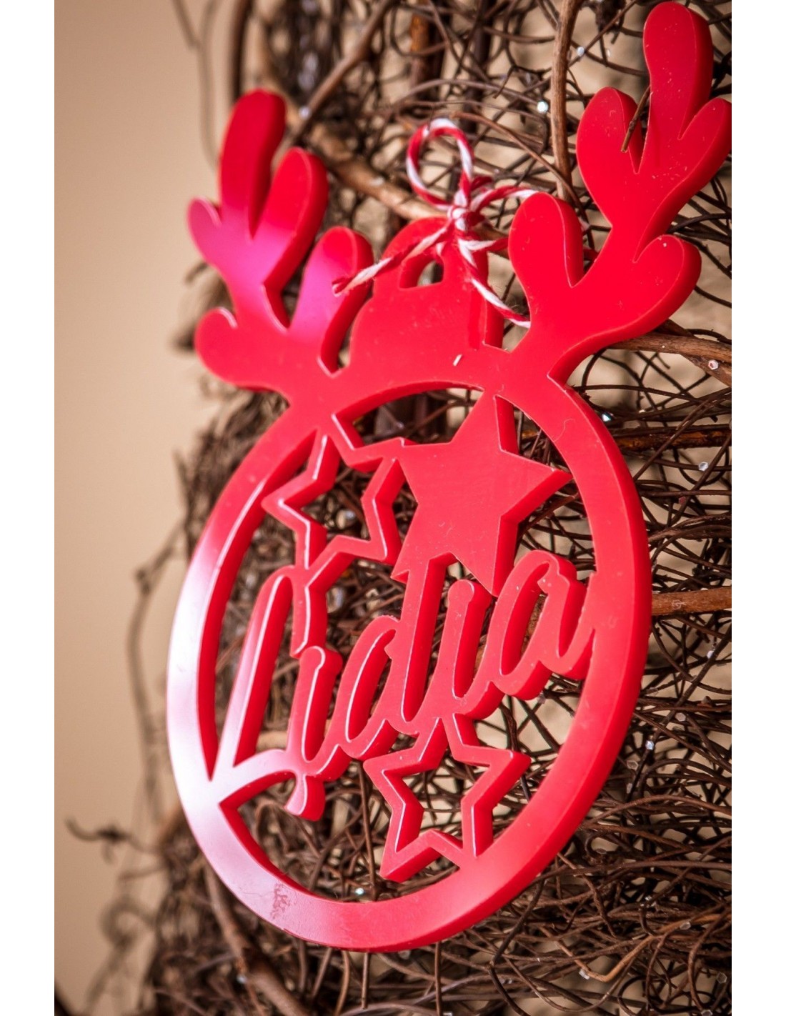 Estos adornos están elaborados en metacrilato de 3 mm de grosor o en madera DM. Elige el color que más te guste entre los disponibles como glitter rojo, oro espejo, blanco, plata, incluso tonos pastel como rosa o azul... Decorar el árbol de manera original ahora es facilísimo con estos adornos de Renos personalizados.