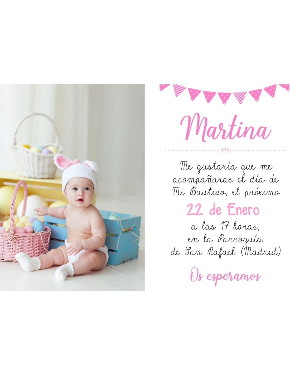 Este diseño de invitación de bautizo con foto de tu bebé sabemos que va a enamoraros.