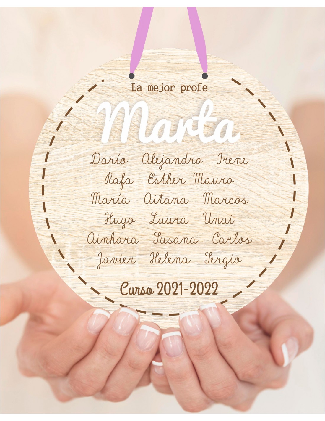 Una placa de madera grabada con los nombres de todos los alumnos que han formado parte del curso. Un recuerdo original para agradecerles todo lo que han enseñado a sus alumnos.